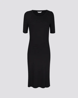Ribbad jerseyklänning slits på båda sidor nertill. 95% Viskos, 5% Elastan. Svart strl M. Som ny! Cubus slutsåld. Perkekt basklänning.