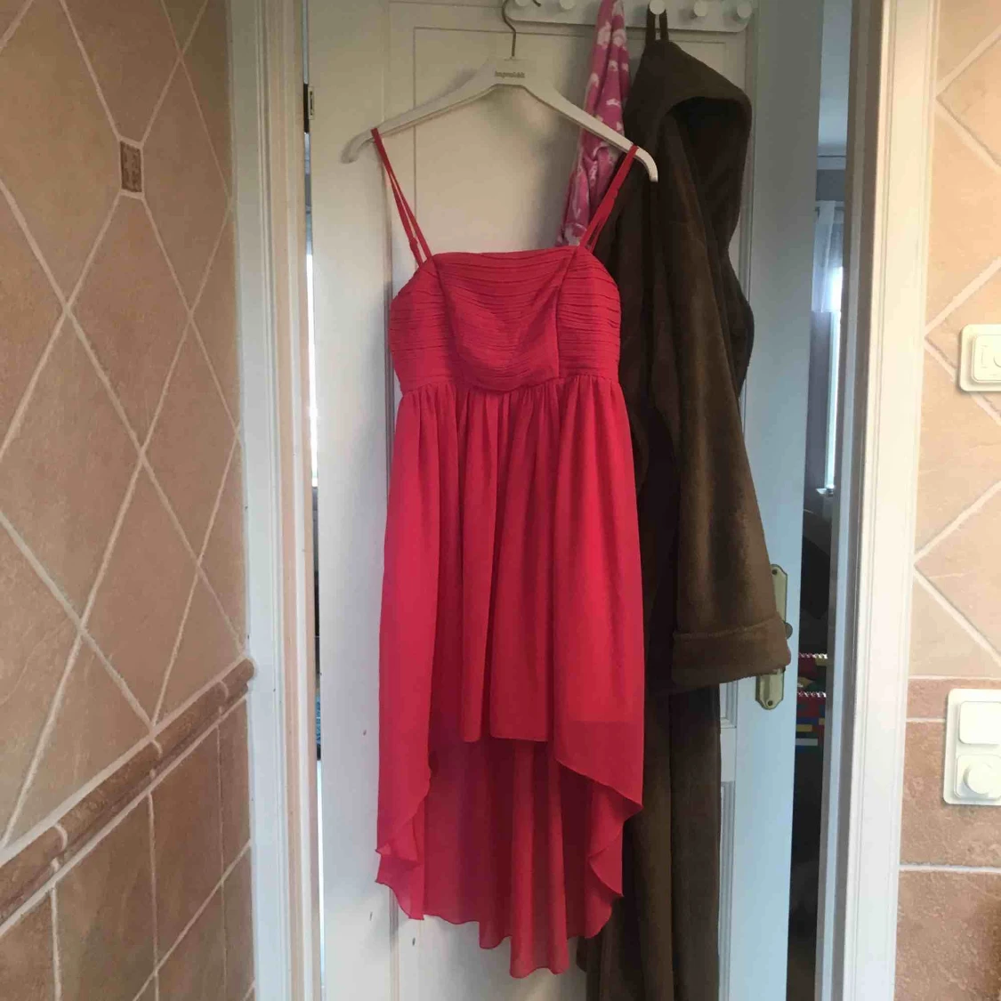 En rosa klänning som e längre där bak och kortare fram. Super fin till sommaren !!!