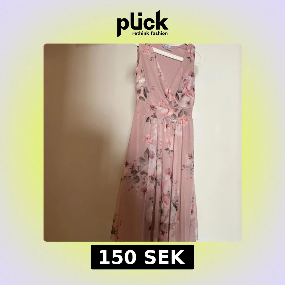 Säljer en romantisk rosa klänning från Bodyflirt med vackert blommönster. Klänningen har en omlott-design och är ärmlös med en v-ringad hals. Perfekt för sommarens festligheter! 🌸