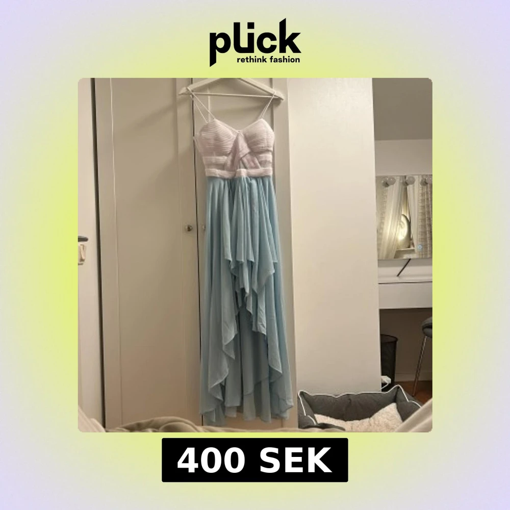 Fin klänning från bodyflirt säljes! Nypris runt 700-800kr, endast använd på en skolavslutning! Axelbanden är uppsydda men går att sprätta upp🤗 Med uppsydda axelband gick klänningen nästan ner till marken (jag är 160cm)