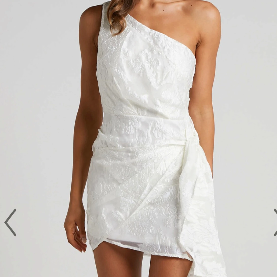 Säljer en vit mini-klänning från Showpo. Klänningen är assymetrisk och går att knyta fram till. Kan skicka samma dag som det köps ifall det skulle behövas!😊