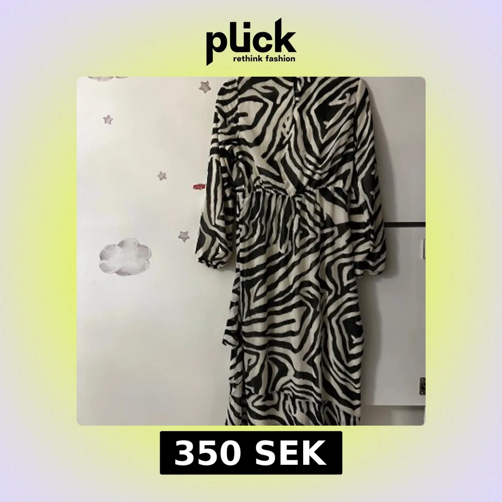 Säljer en långklänning från LC Waikiki med svartvitt zebramönster. Klänningen har långa ärmar, markerad midja och volangdetalj nertill. Perfekt för dig som gillar djurmönster och vill sticka ut.