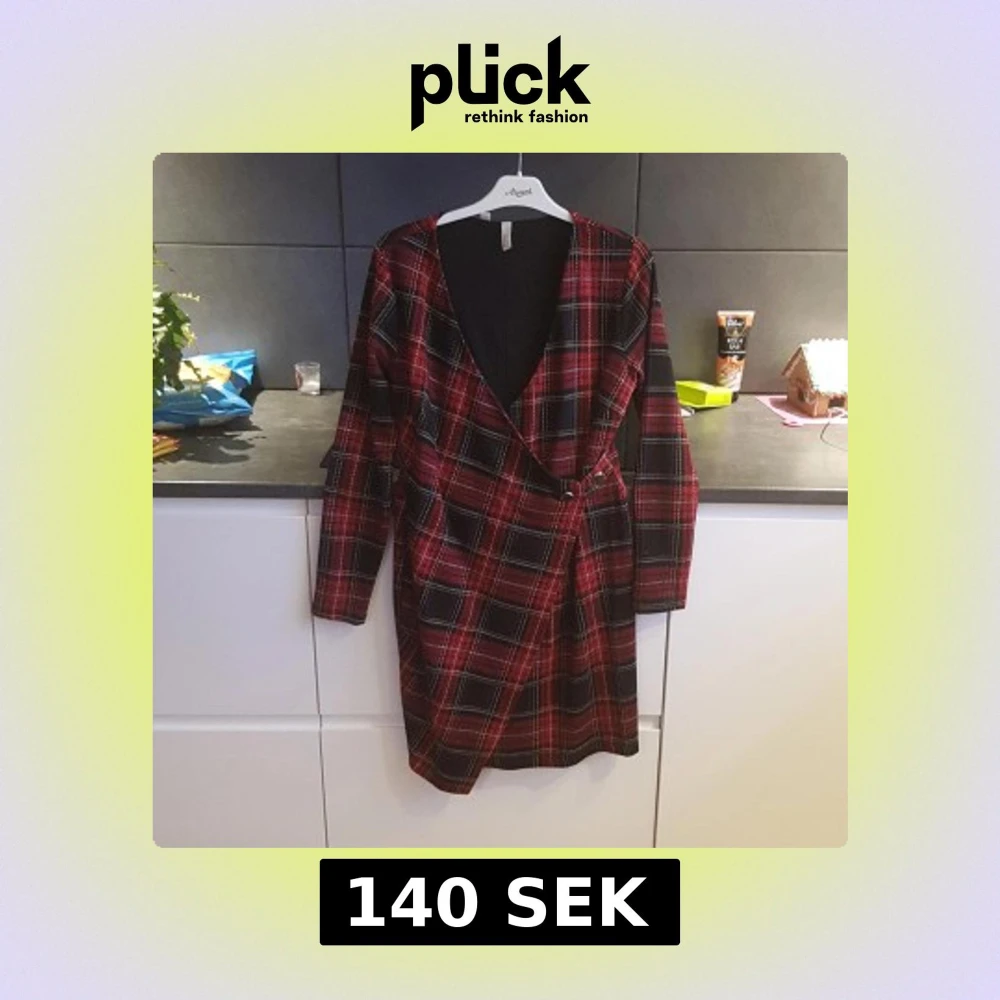 Snygg rutig omlottklänning från Bodyflirt i rött och svart med inslag av vitt. Klänningen har en v-ringad design och knappar framtill. Perfekt för en stilfull look!