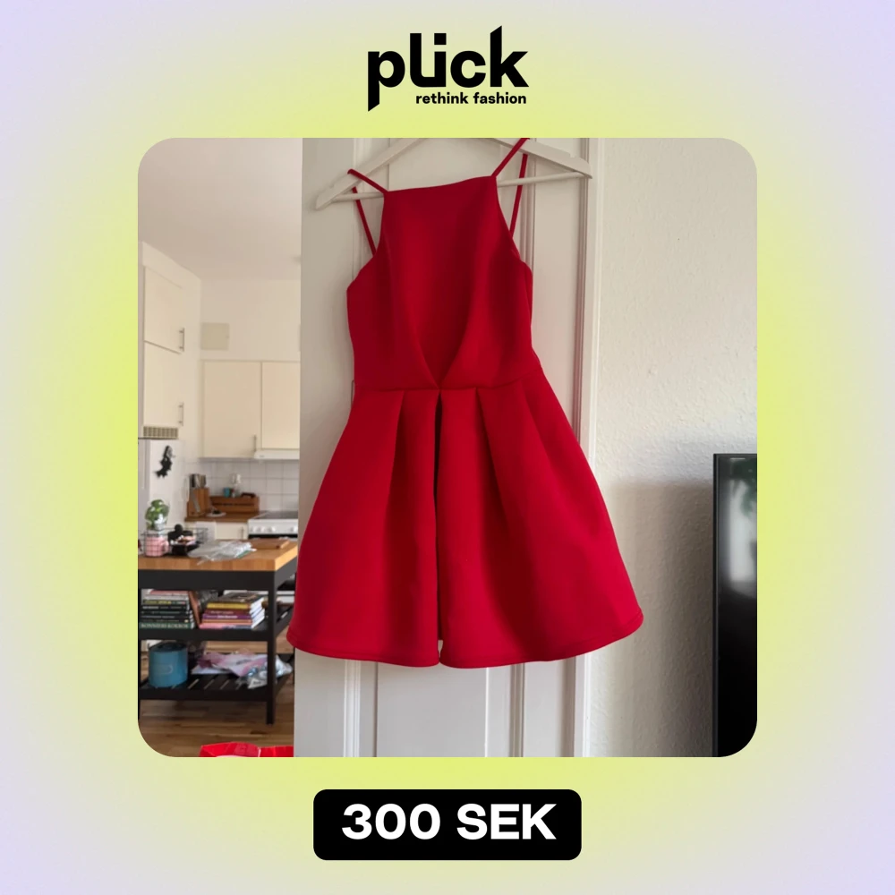 Säljer en superfin röd klänning med smala axelband och en härlig utsvängd kjol. Perfekt för festliga tillfällen! Klänningen har en dragkedja i ryggen för enkel påklädning. Den är i mycket bra skick och passar perfekt till sommarens eller julens alla fester. 🌟