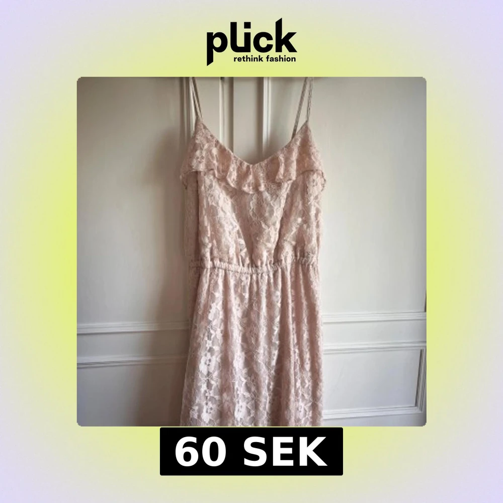 Säljer en söt ljusrosa klänning från Divided med spetsdetaljer och smala axelband. Klänningen har en volang upptill och är perfekt för somriga dagar. Materialet är en blandning av polyamid och polyester.