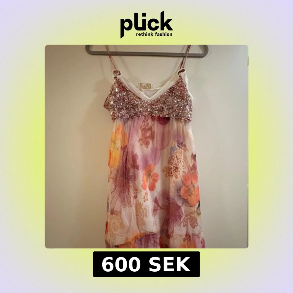 Säljer en romantisk klänning från Exex med glittrig paljettliv i rosa och smala axelband. Kjolen är blommig i rosa, lila och orange toner med lätt och luftig känsla. Perfekt för sommarens alla tillfällen!