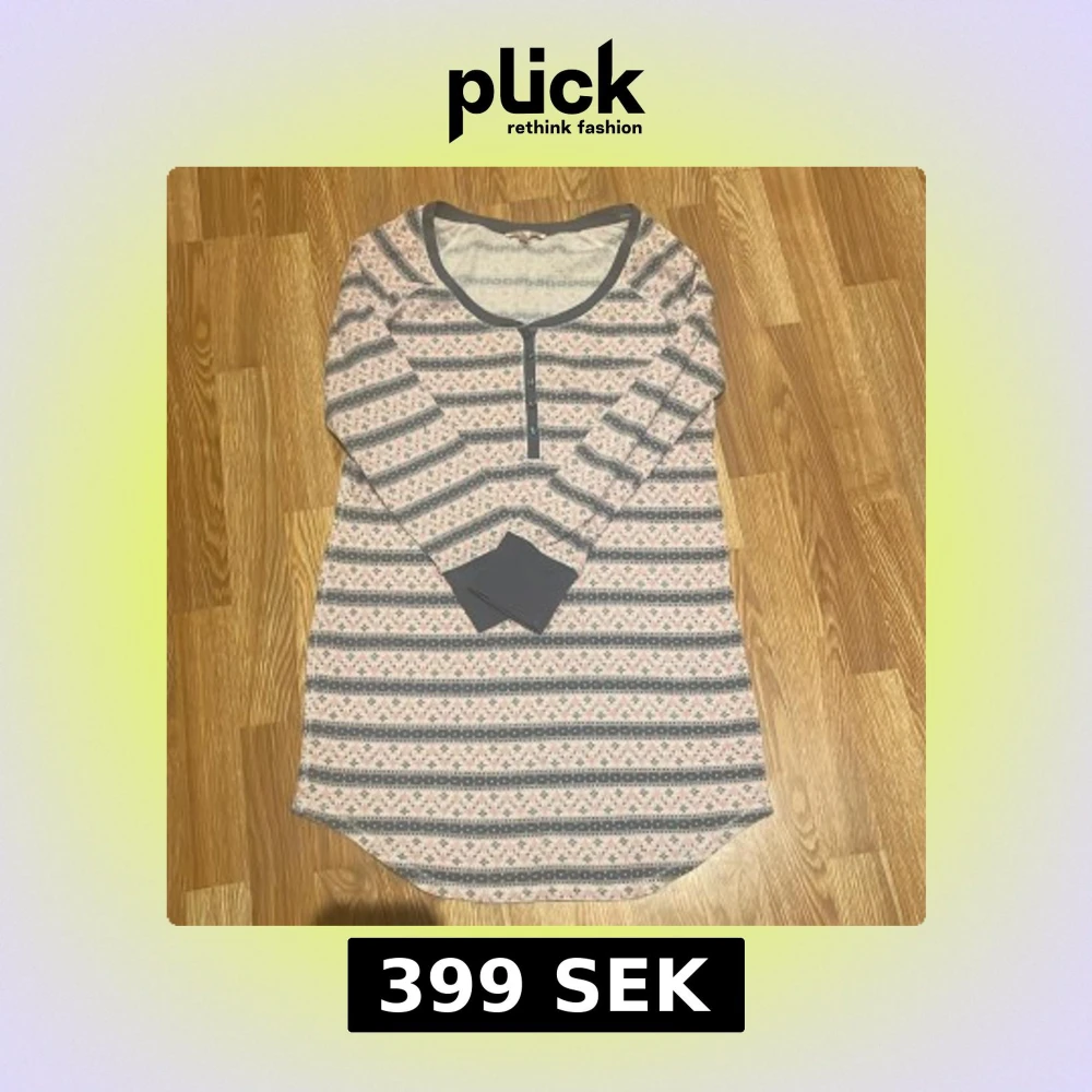 Säljer en mysig klänning/nattlinne från Victoria's Secret med ett fint mönster i grått och rosa. Klänningen har långa ärmar och knappar framtill. Perfekt för en avslappnad dag hemma eller en mysig kväll.