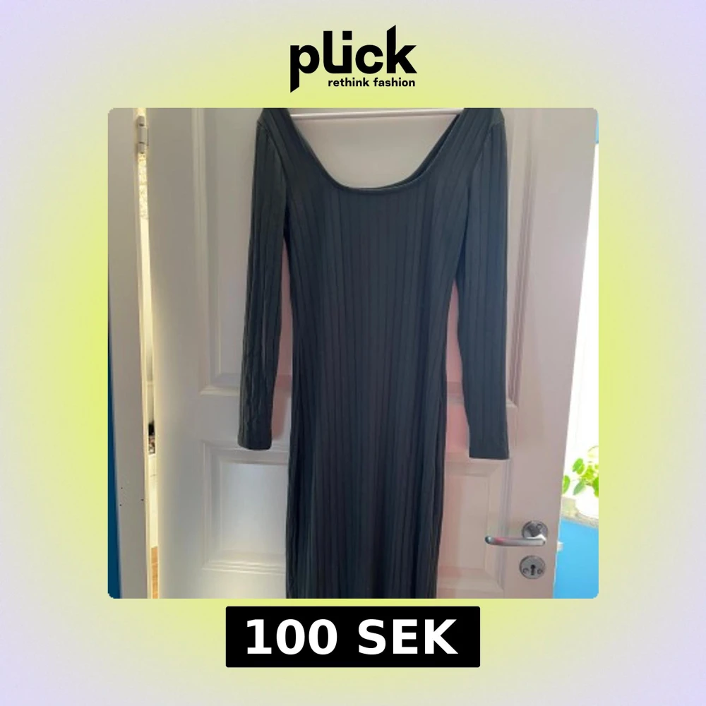 Snygg mörkgrön klänning från Bubbleoom i ribbat material. Klänningen har en åtsittande passform och långa ärmar, i nyskick. Strl M.