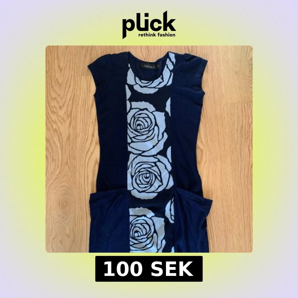 Supersnygg svart klänning från Mina UK med stora vitblommiga mönster framtill. Klänningen har korta ärmar och två stora fickor på sidorna. Perfekt för dig som gillar unika detaljer och vill sticka ut.