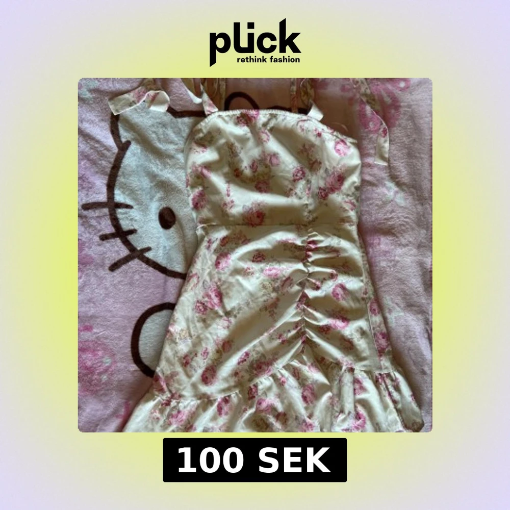 Söt blommig klänning från SHEIN, créme vit med rosa blommor och knytbara axelband. Ordinarie pris gick på 180kr.