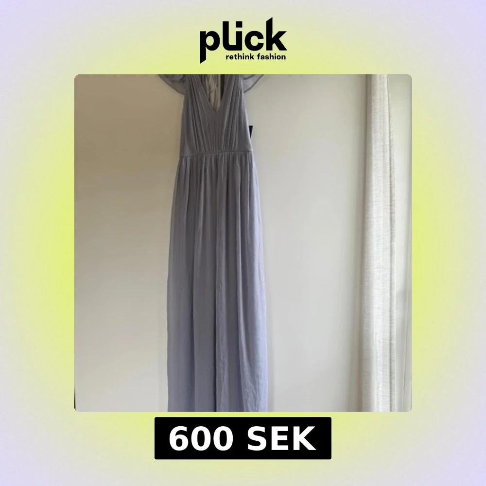 Superfin ljuslila/ljusblå långklänning från NAKD Eve med djup v-ringning och öppen rygg. Klänningen har smala axelband som knyts i ryggen och ett luftigt, fallande tyg. Perfekt för speciella tillfällen.