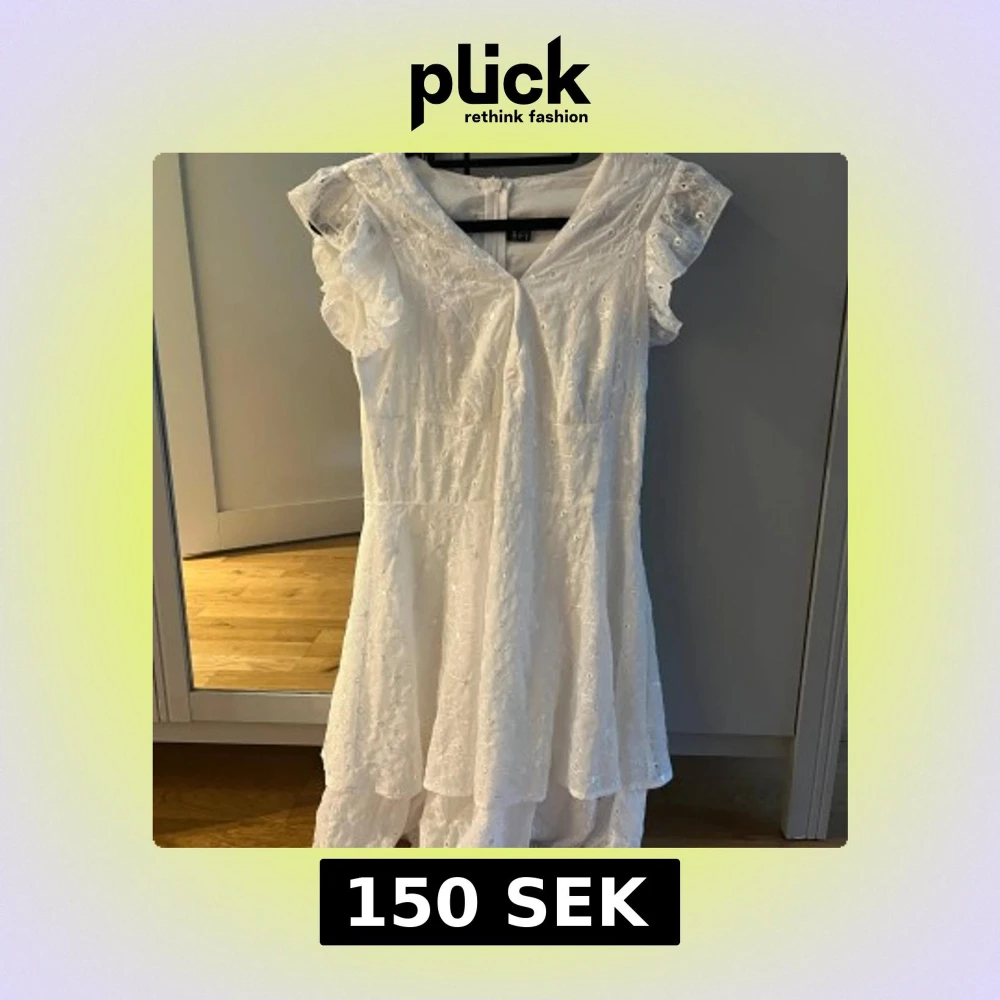 Superfin vit klänning från LoNESS med broderade blommor och volangdetaljer vid ärmarna. Klänningen har v-ringning, korta volangärmar och dragkedja i ryggen. Perfekt för sommarens alla tillfällen!