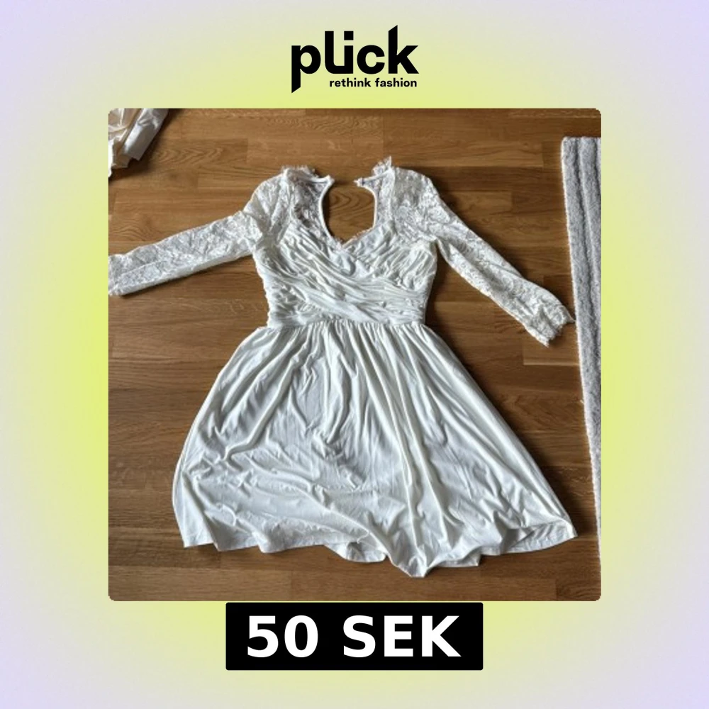 Säljer en elegant vit klänning från Chiara Porthi med vackra spetsdetaljer och trekvartsärmar. Klänningen har en omlott-design vid bysten och en kort kjol som ger en romantisk look. Perfekt för speciella tillfällen!