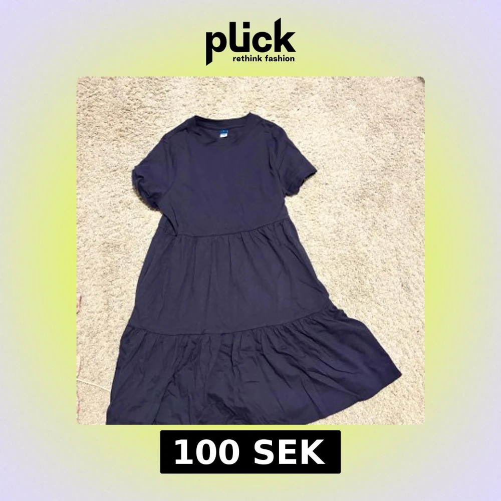 Säljer en mörkblå klänning från Old Navy i storlek S. Klänningen har korta ärmar och en avslappnad passform med volangdetaljer i kjolen.