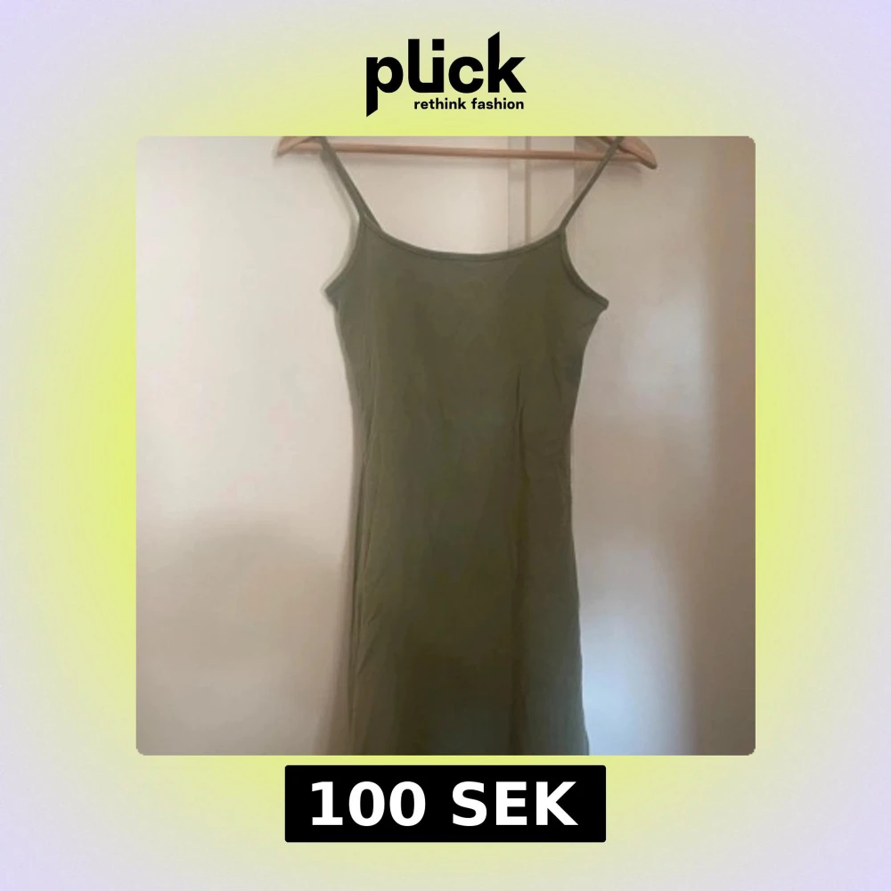 Säljer en stilren olivgrön klänning från H&M Divided. Klänningen har smala axelband och en enkel design som passar perfekt för varma dagar.