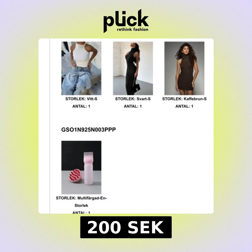 VÄRDE: 450kr-Säljer ett o öppnat SHEIN paket, fick 2 beställningar, 1 brun klänning med bar rygg och polo krage, en pola svart lång tight klänning ner till fötterna, (passar mig som är 168) ribbad biege vit polo topp, en skalp oil kit, samt silkes mössa som ej syns i bild i baby rosa. SKRIV FÖR MER BILDER.