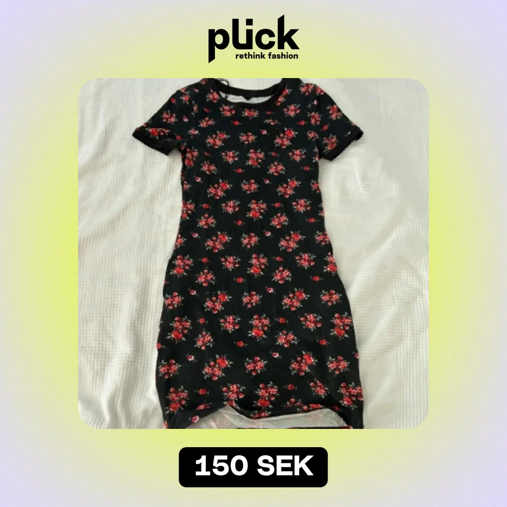 Säljer en superfin svart klänning från H&M Divided med ett gulligt blommönster i rött.