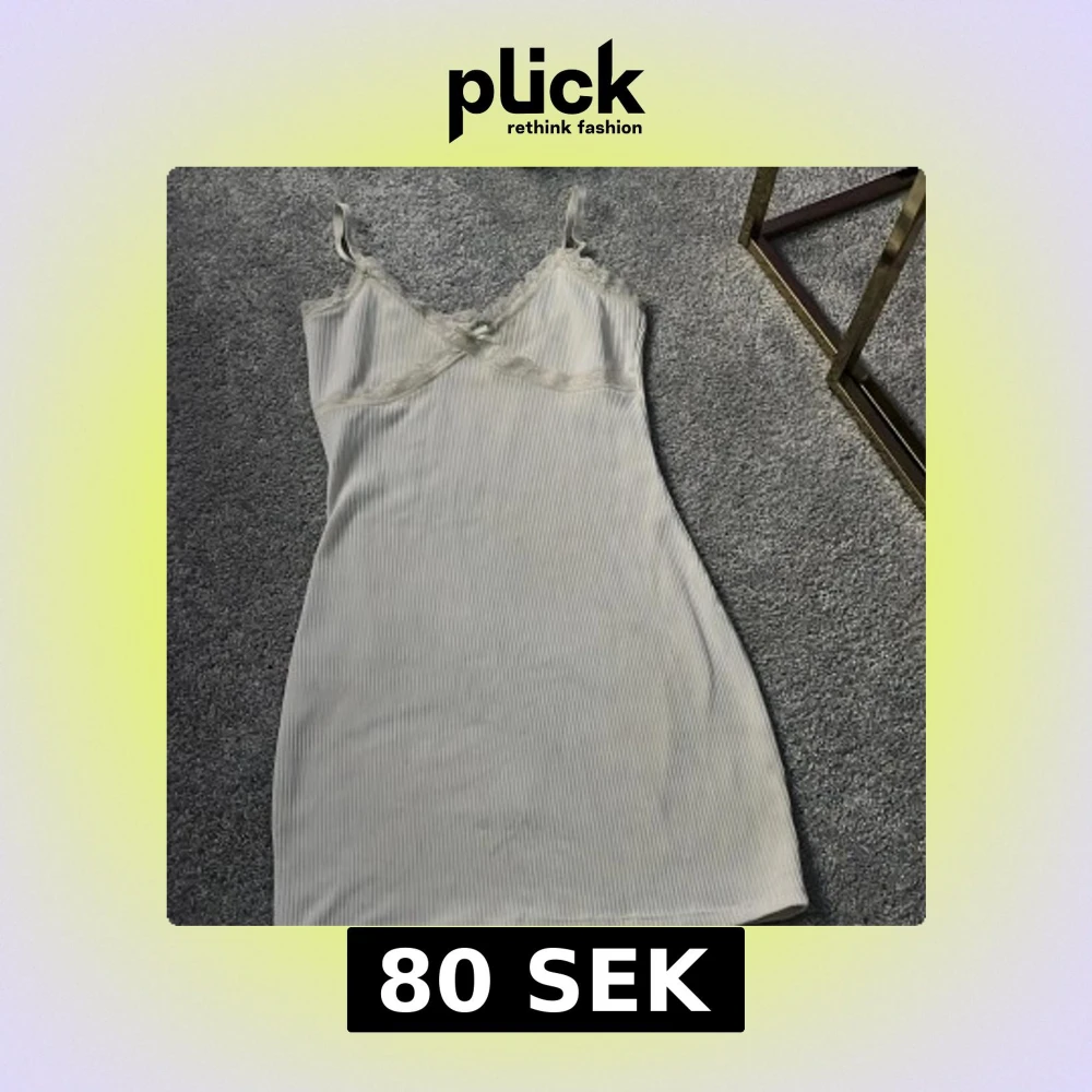 Säljer en stilren vit ribbad klänning från H&M Divided. Klänningen är ärmlös med smala axelband och har en söt spetsdetalj vid halsringningen. Perfekt för en avslappnad look eller att klä upp med accessoarer.