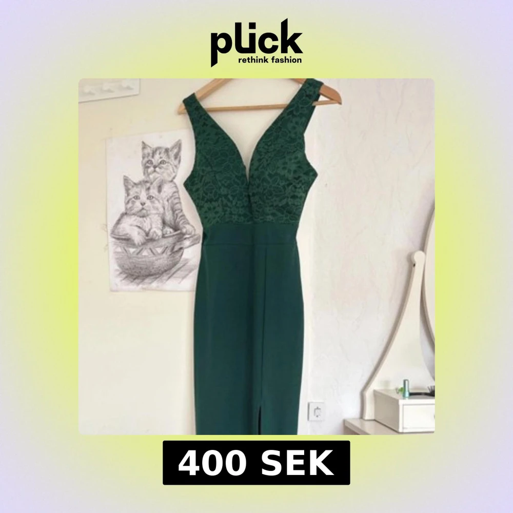 Grön klänning med spets och slits