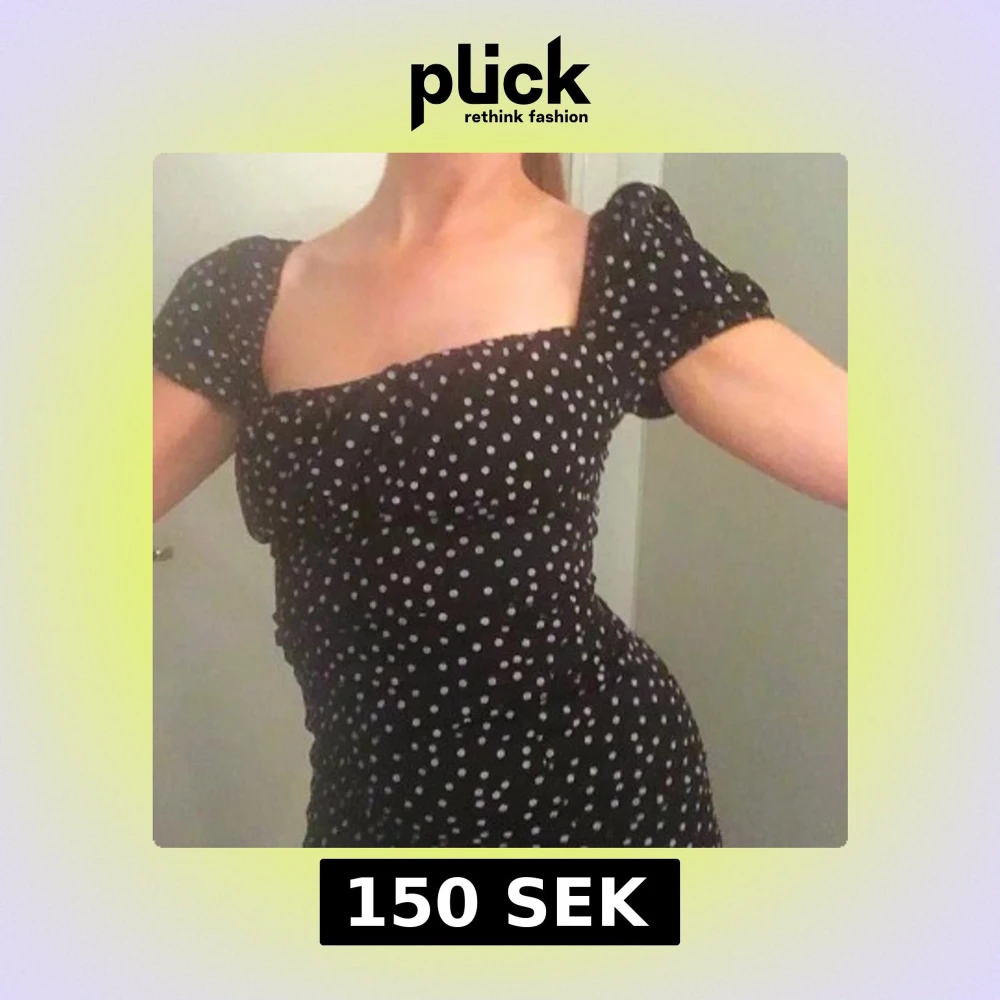 Säljer en svart klänning med vita prickar från Missguided. Klänningen har korta ärmar och en smickrande passform. Perfekt för en stilren look!
