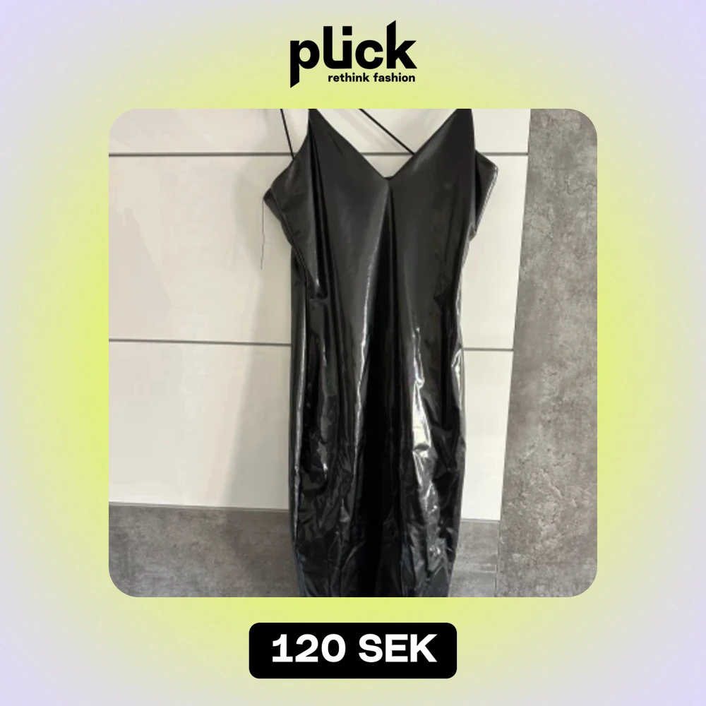 Säljer en snygg skinnklänning från SHEIN i storlek S. Klänningen är axelbandslös med en elegant v-ringning. Perfekt för festliga tillfällen. Aldrig används pågrund av fel storlek