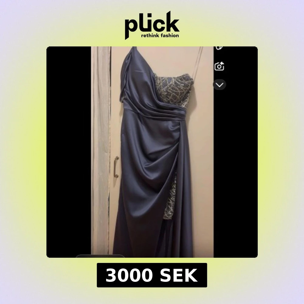 Elegant mörkblå oneshoulder klänning med glittrig detalj på bröstet. Klänningen har en draperad design och är perfekt för festliga tillfällen. Original pris 6500 priset kan även diskuteras