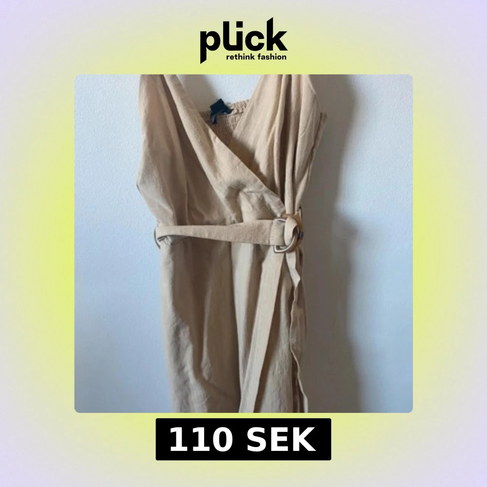 Säljer en beige omlottklänning från Amisu i storlek 36. Klänningen har v-ringning, avtagbart bälte i midjan och smockad rygg för extra komfort. Perfekt för varma dagar med sin lätta och luftiga känsla.Frakt tillkommer