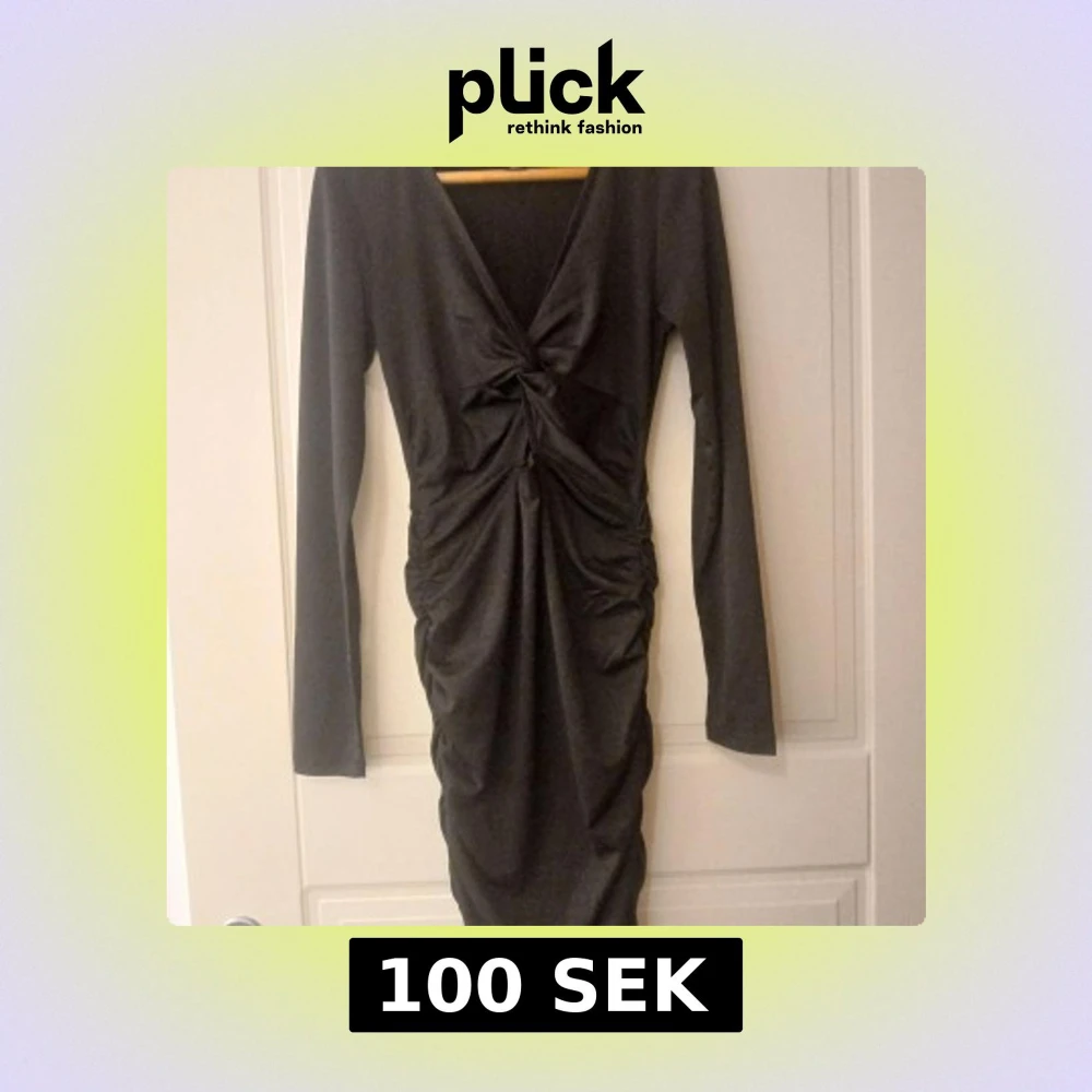 Säljer en svart långärmad klänning från Amisu i storlek 36. Klänningen har en snygg v-ringning och draperad detalj framtill som ger en smickrande passform. Perfekt för dig som gillar stilrena och eleganta plagg.