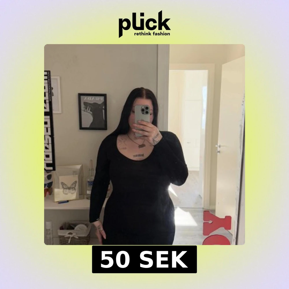 Säljer en stilren svart långärmad klänning från Motel. Klänningen har en v-ringad design och är perfekt för en elegant look. Den är tillverkad i ett mjukt och bekvämt material som ger en smickrande passform. Perfekt för att klä upp eller ner beroende på tillfälle.