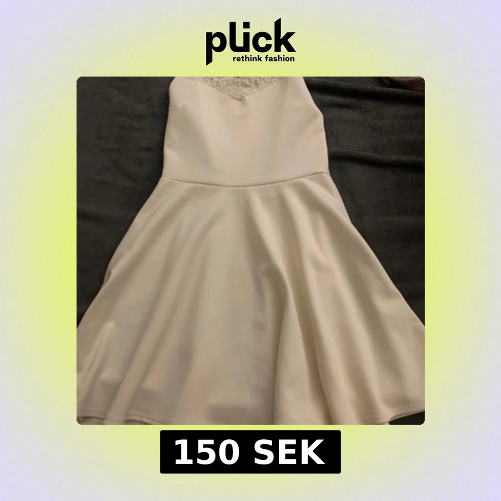 Elegant vit klänning från Tris Design med spetsdetaljer vid halsen. Klänningen har en v-ringad design och är ärmlös, vilket ger en stilren och sofistikerad look. Perfekt för speciella tillfällen. Skulle passa perfekt som student klänning!!
