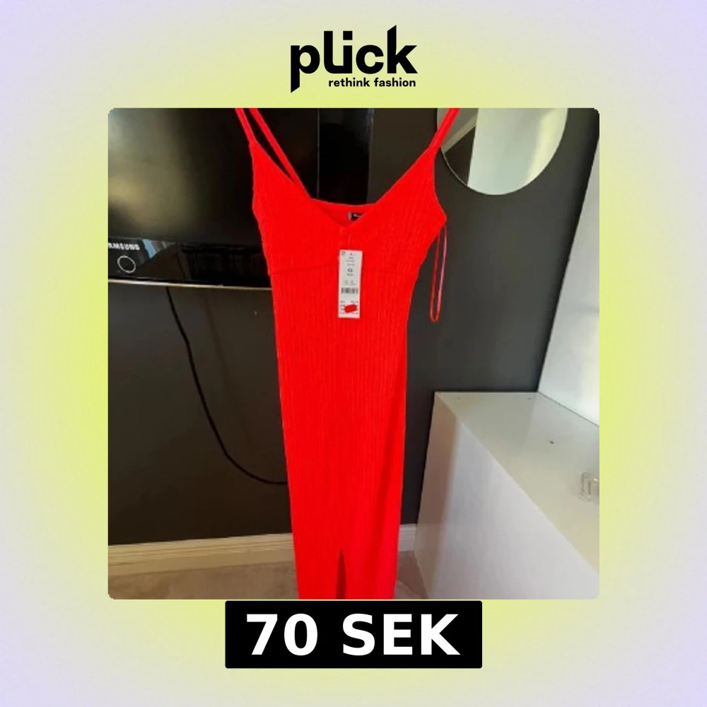 Säljer en eldigt röd långklänning från Livia med smala axelband och stretchigt material. Klänningen har en enkel, tight passform och är perfekt för dig som vill sticka ut. Supersnygg till sommarens alla tillfällen!