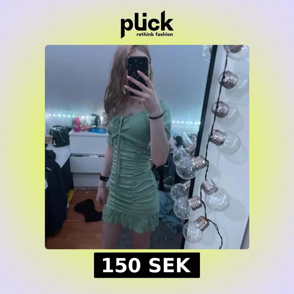 Snygg grön klänning från Shein med kort längd och volangdetaljer. Klänningen har en åtsittande passform och korta ärmar. Perfekt för en somrig look! 💚