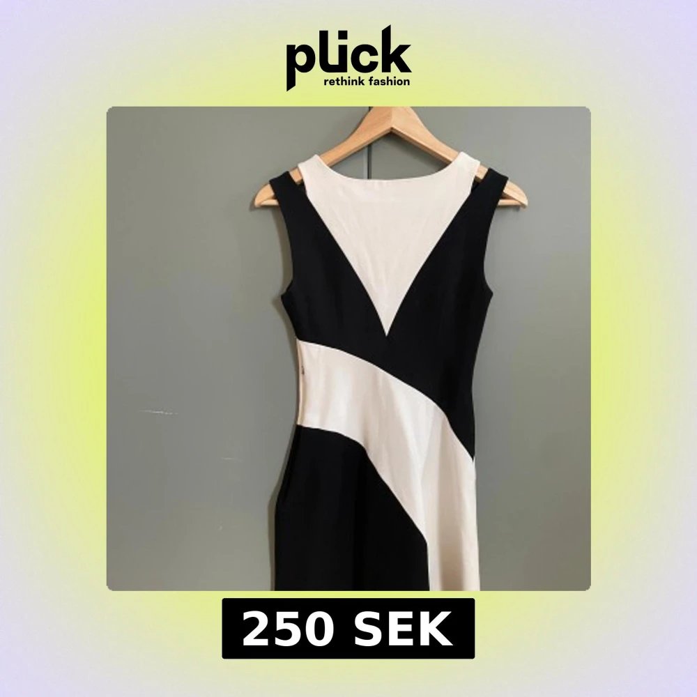 Snygg svart och vit klänning från Karen Millen med ett unikt geometriskt mönster. ❤️🤩Klänningen är ärmlös och har en elegant design som passar perfekt för speciella tillfällen. Den är i storlek EU 34 och har en stilren look.