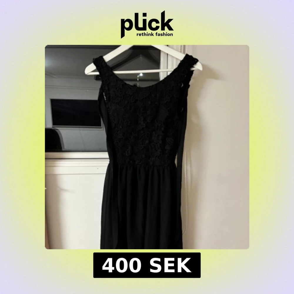 Elegant svart klänning med spetsdetaljer och öppen rygg från Model Behaviour. Klänningen har en knytning i ryggen och är ärmlös, vilket ger en stilren och sofistikerad look. Perfekt för speciella tillfällen.