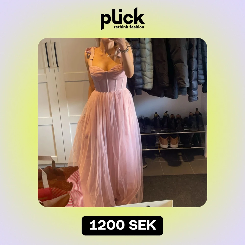 Säljer en superfin rosa långklänning från Showpo. Den har en bustier-topp med rosett axelband och en fluffig tyllkjol. Perfekt för bal eller fest! 💖Helt oanvänd dessutom!