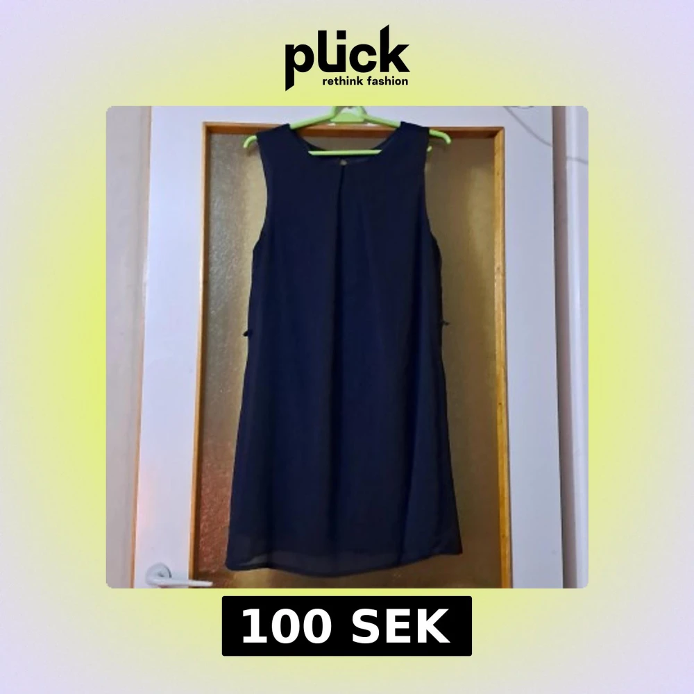 En stilren mörkblå ärmlös klänning från Atmosphere. Klänningen är kort, har rund halsringning och en enkel, rak passform. Materialet känns lätt och flowy, perfekt för dig som gillar minimalistisk stil. Det finns små hällor i sidorna för eventuellt bälte.
