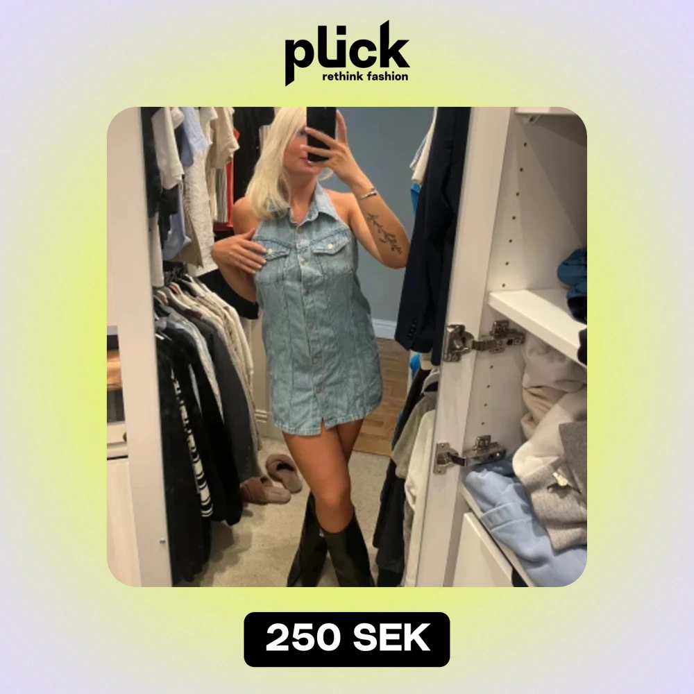 Säljer denna jeansklänning från zara. Använd ett fåtal gånger. Öppen i ryggen och skitsnygg!! Nypris 599:- säljer för 250:-