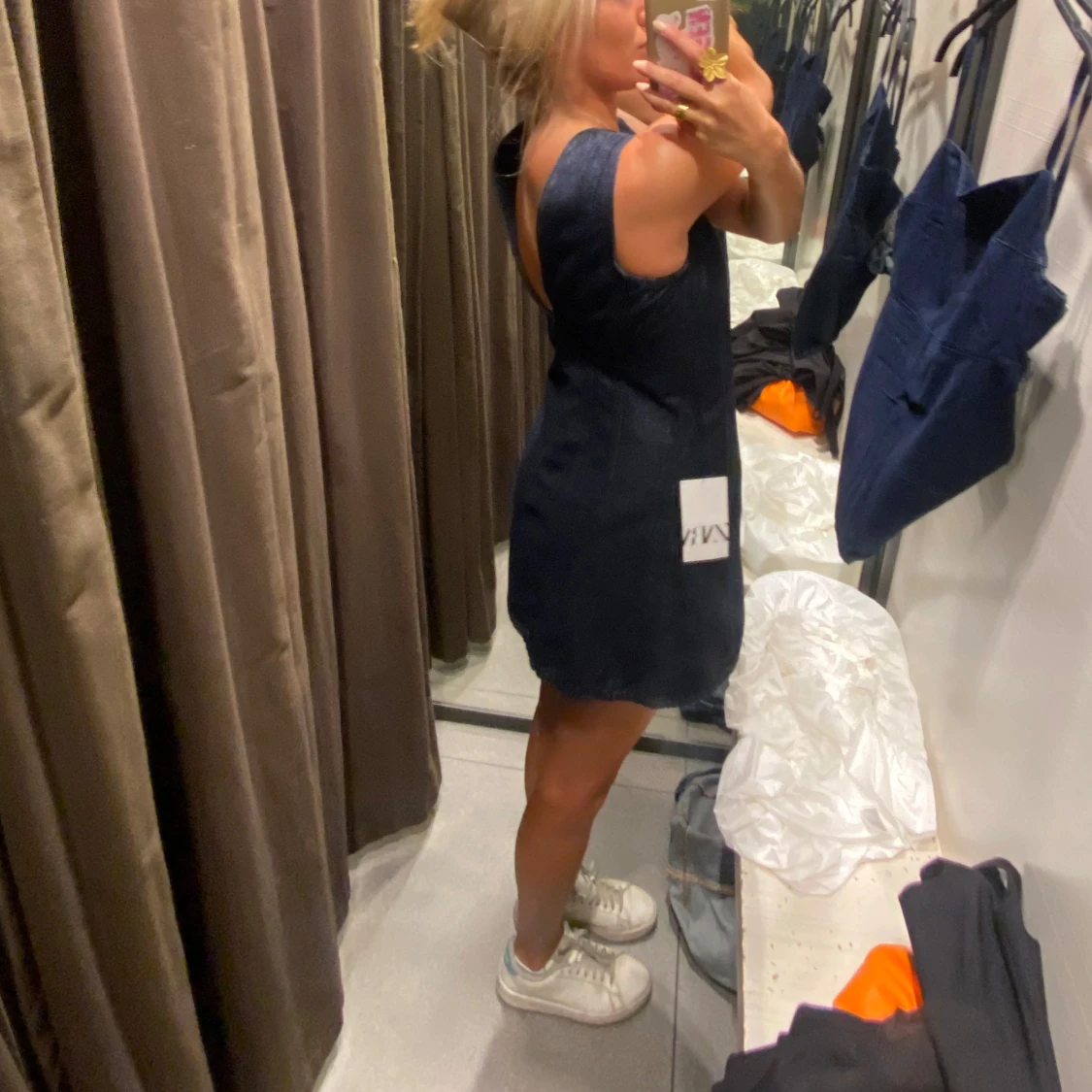 Supersnygg denimklänning från Zara med v-ringning och öppen rygg. Använd en gång bara så helt i nyskick! Så så så snygg men använder den inte då jag har en typ likadan…