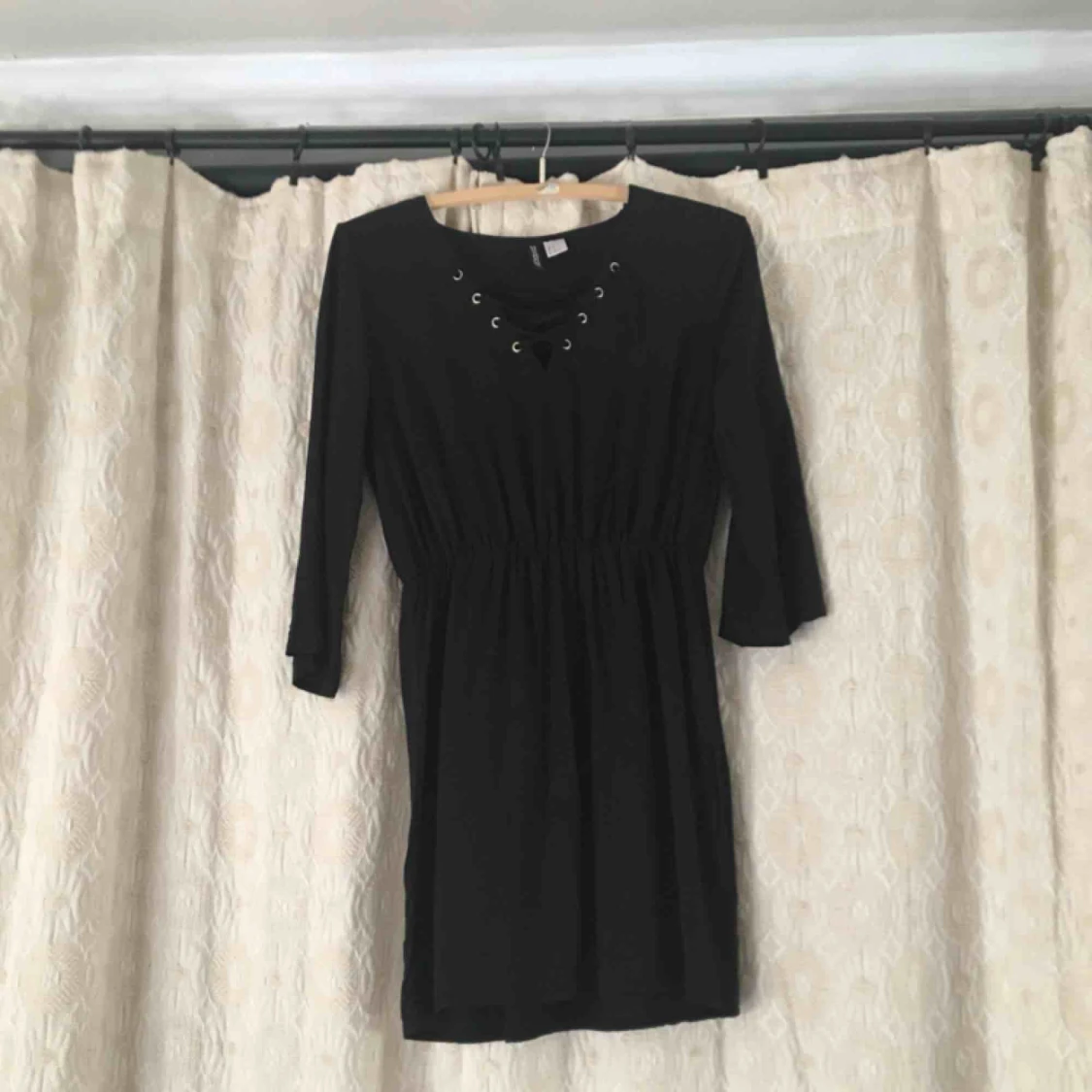 Säljer nu en av mina favoritklänningar som funkar till både vardags och fest. Snörning vid urringningen och resår i midjan, och grymt skön! Använd 5-7 gånger men säljer nu för att den blivit liten runt armarna. Betalas via swish, frakt ingår ✨