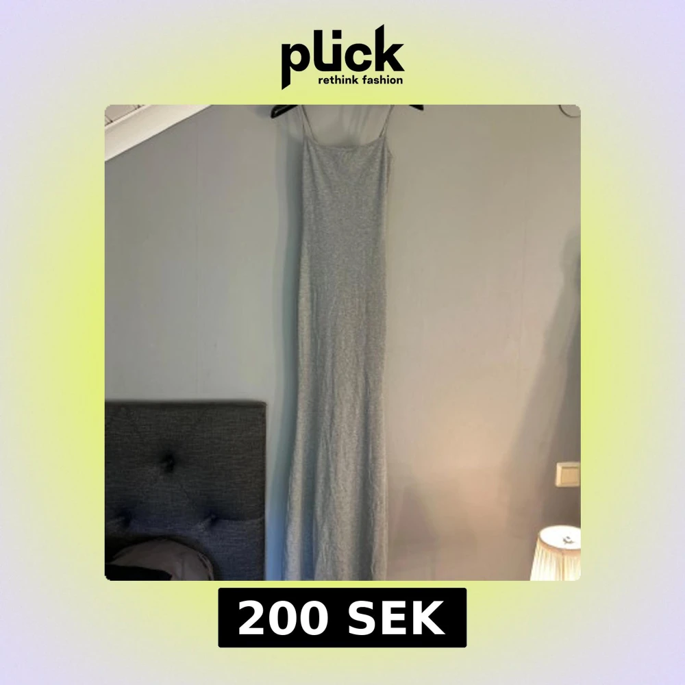 Säljer en enkel och stilren grå långklänning från Design by Si. Klänningen har smala axelband och är figurnära med rak passform. Oanvänd!💞