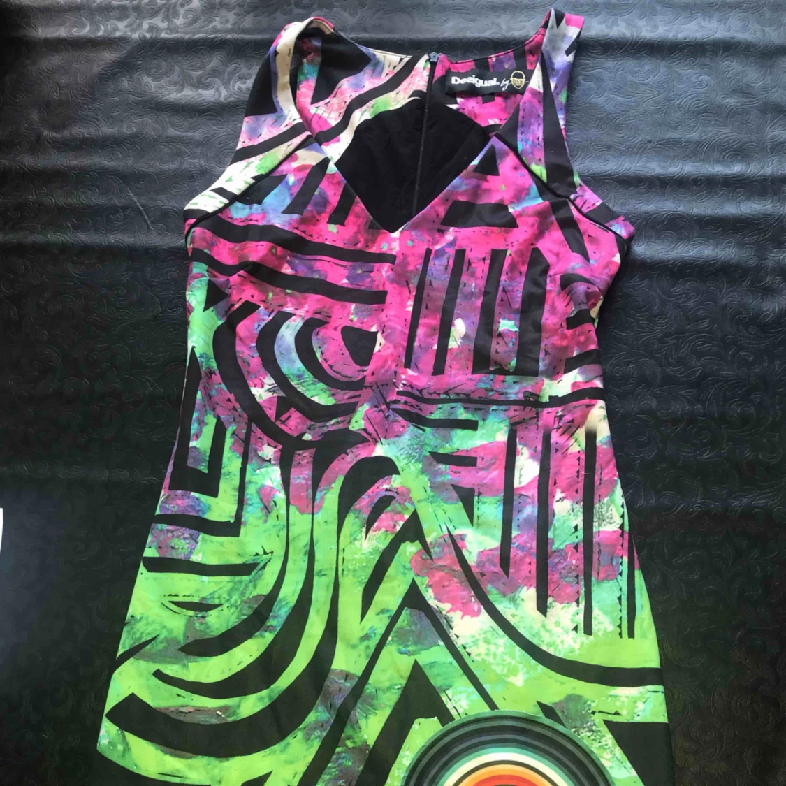 Flerfärgad klänning från desigual med dragkedja baktill. Kan skickas men köparen står för frakten
