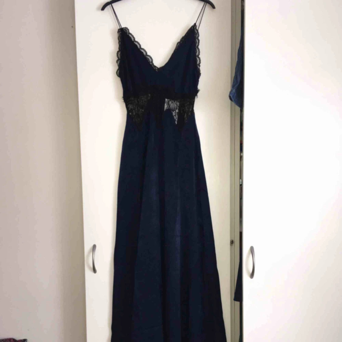 Supersnygg marinblå balklänning som tyvärr var för liten för mig. Helt oanvänd med prislappen kvar. Köpt för 870kr. Frakt ingår i priset.