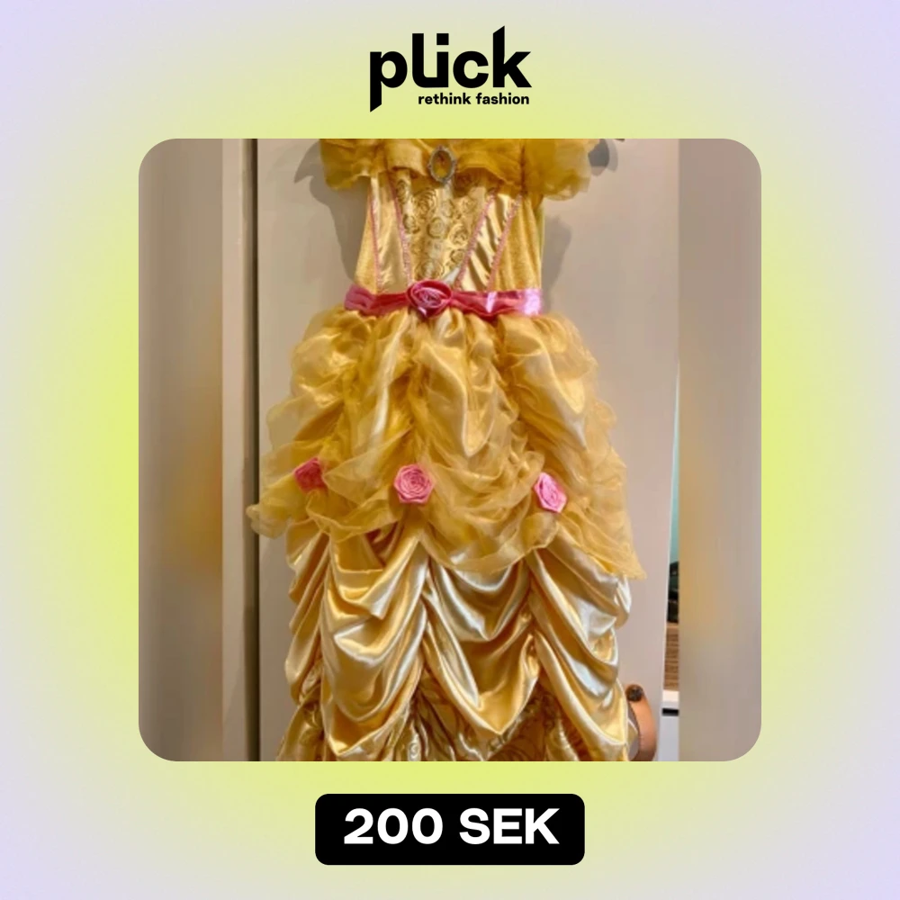 Fin prinsessklänning (skönheten och odjuret), köpt från Disney store. Storlek 8-9 år. Sparsamt använd. Kan skickas mot att köparen står för frakten.