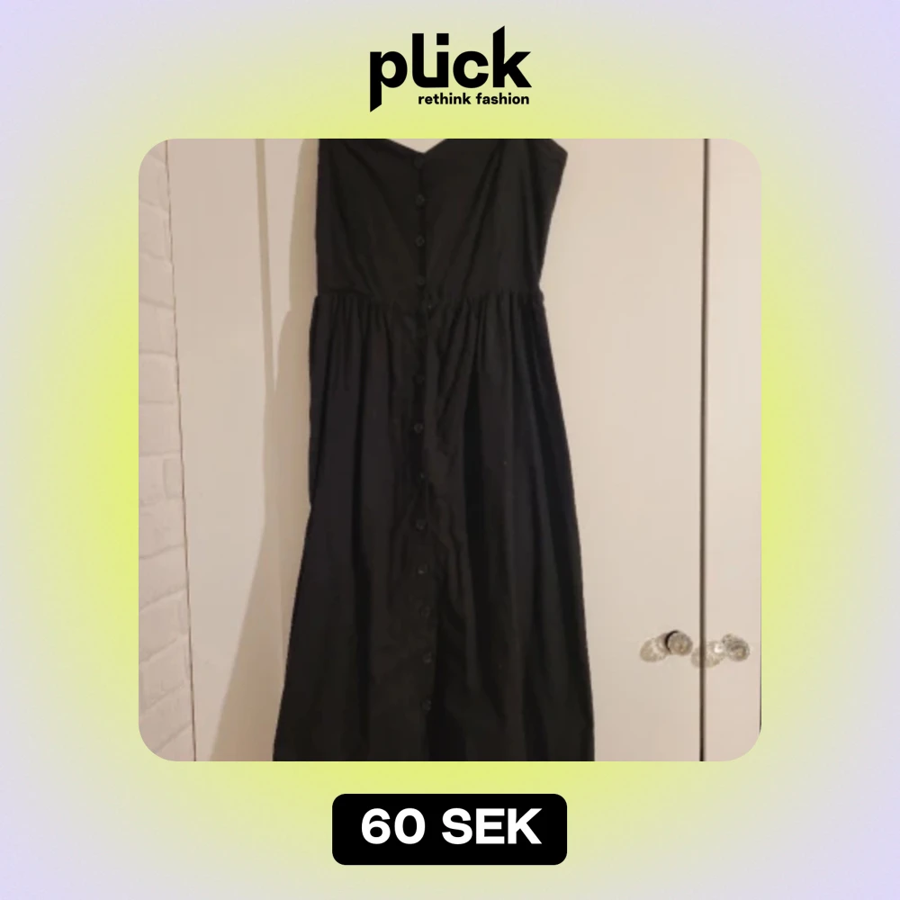 Svart klänning med knappar som går hela vägen från topp till tå, fläckfri och i storlek 38