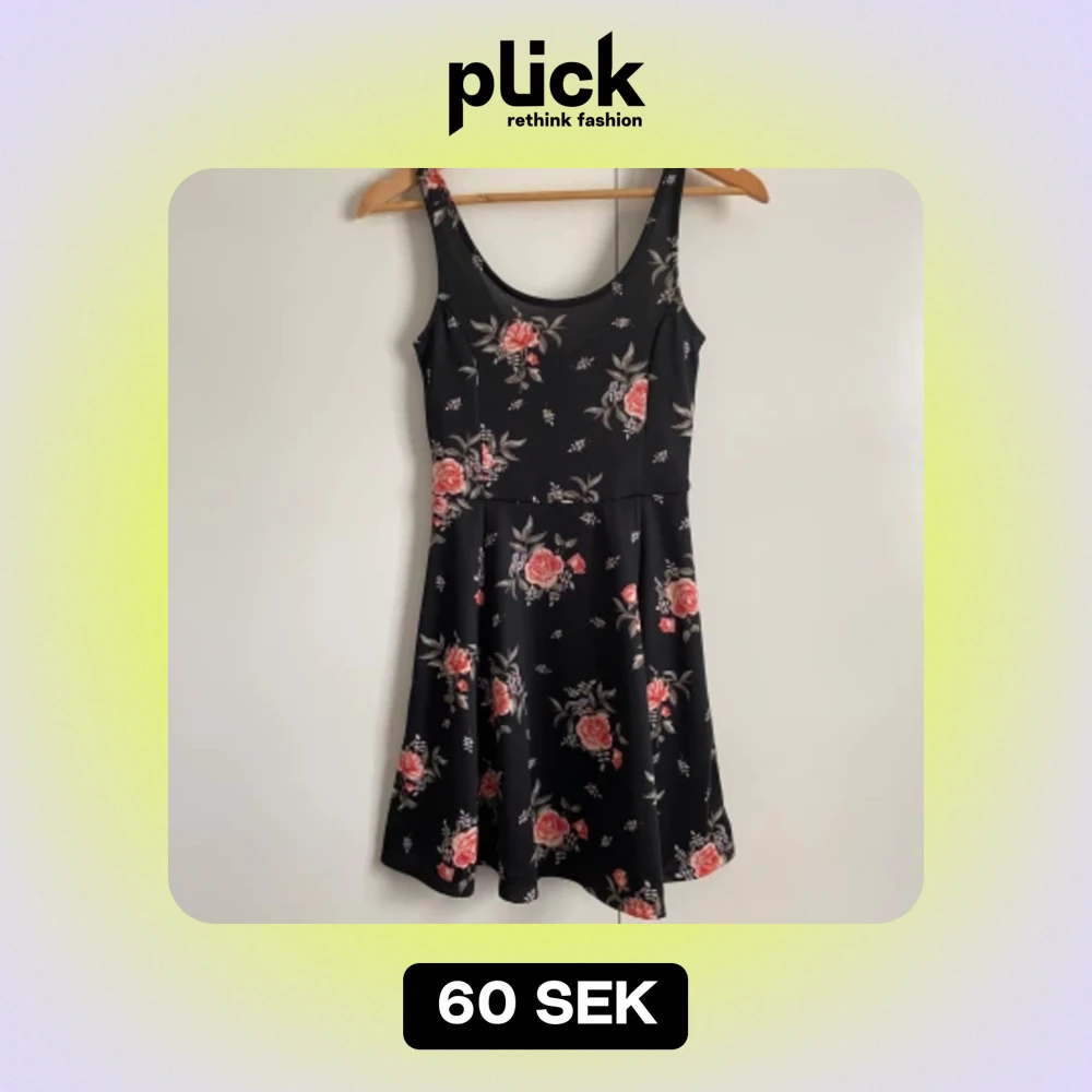 NWOT H&M kort blommig klänning stl 34. Endast testade en gång. 🌸 Vi tvättar parfymfritt, röker INTE men katt finns i hemmet sedan några veckor tillbaka.