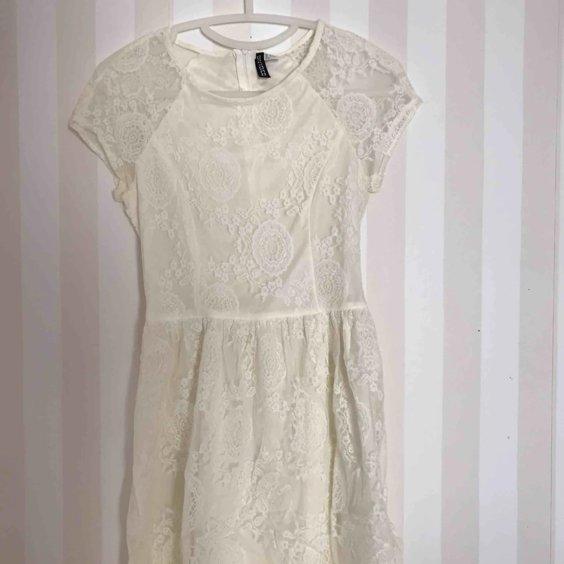 Mycket fin vit mönstrad klänning i bra skick. Endast använd en gång, säljer då den inte kommer till användning. Skulle passa perfekt till en studentdag!