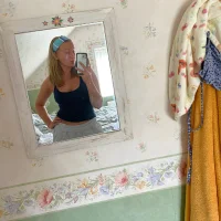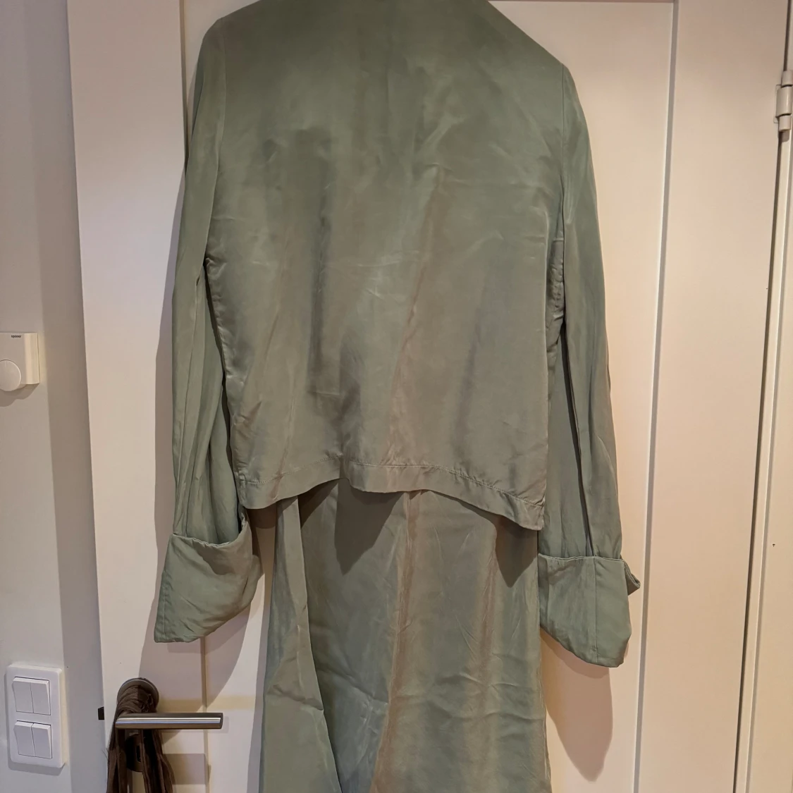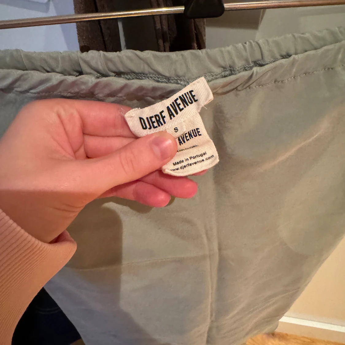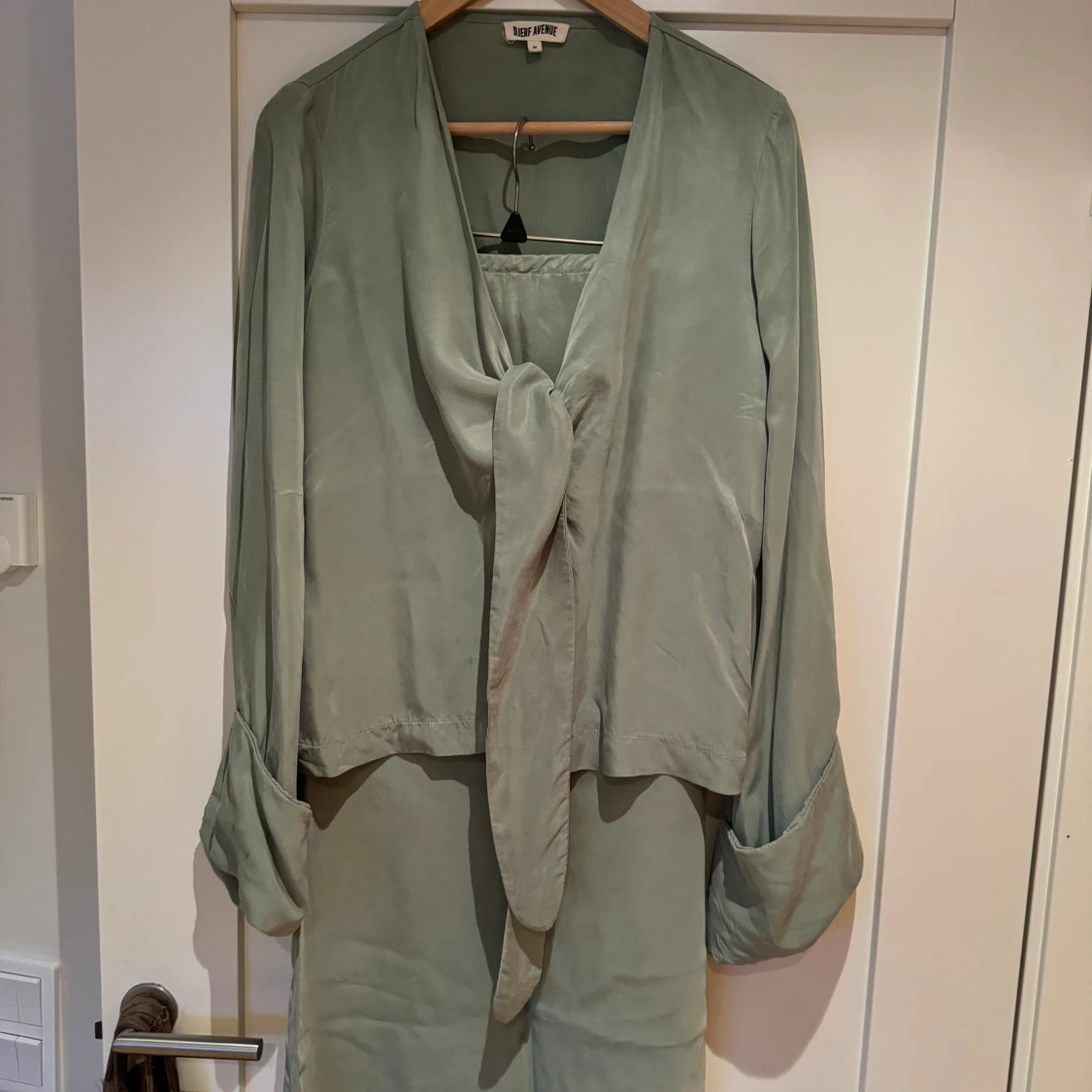 Grönt Djerf avenue set, helt slutsålt går ej att få tag i längre. Storlek M i topp och S i kjol. Fint skick! Lappen är dock lite av i kjolen (se bild).