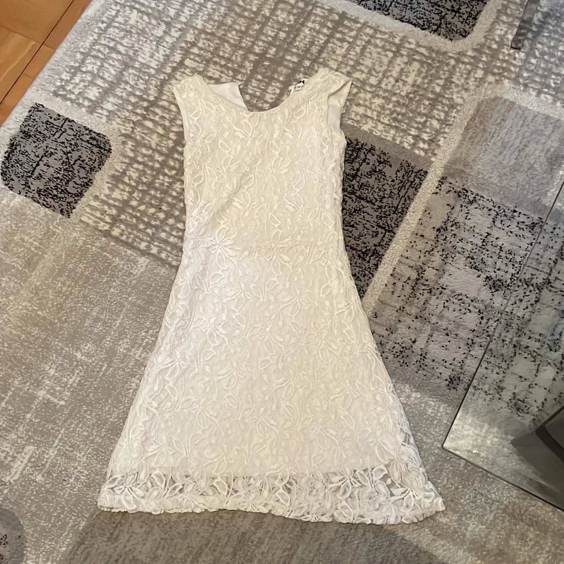 Säljer denna jättefina vita klänning med spets. Använd men fortfarande i gott skick. Säljer då den inte använda mer.