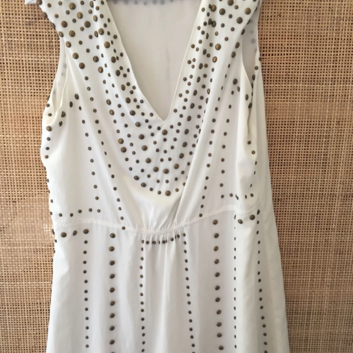 Ursnygg! Köpt på köp&säljsajt men blev för stor. Säljaren säger att den är äkta och inköpt i Belgien. Vit bas med guldnitar. Skönt och svalt tyg! På några ställen har de blivit små små märken av nitarna men detta syns knappt. Köparen betalar frakt.