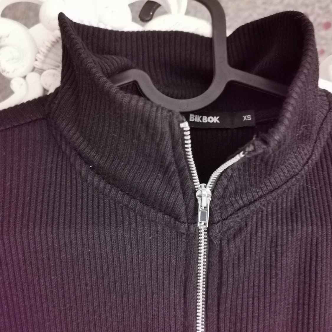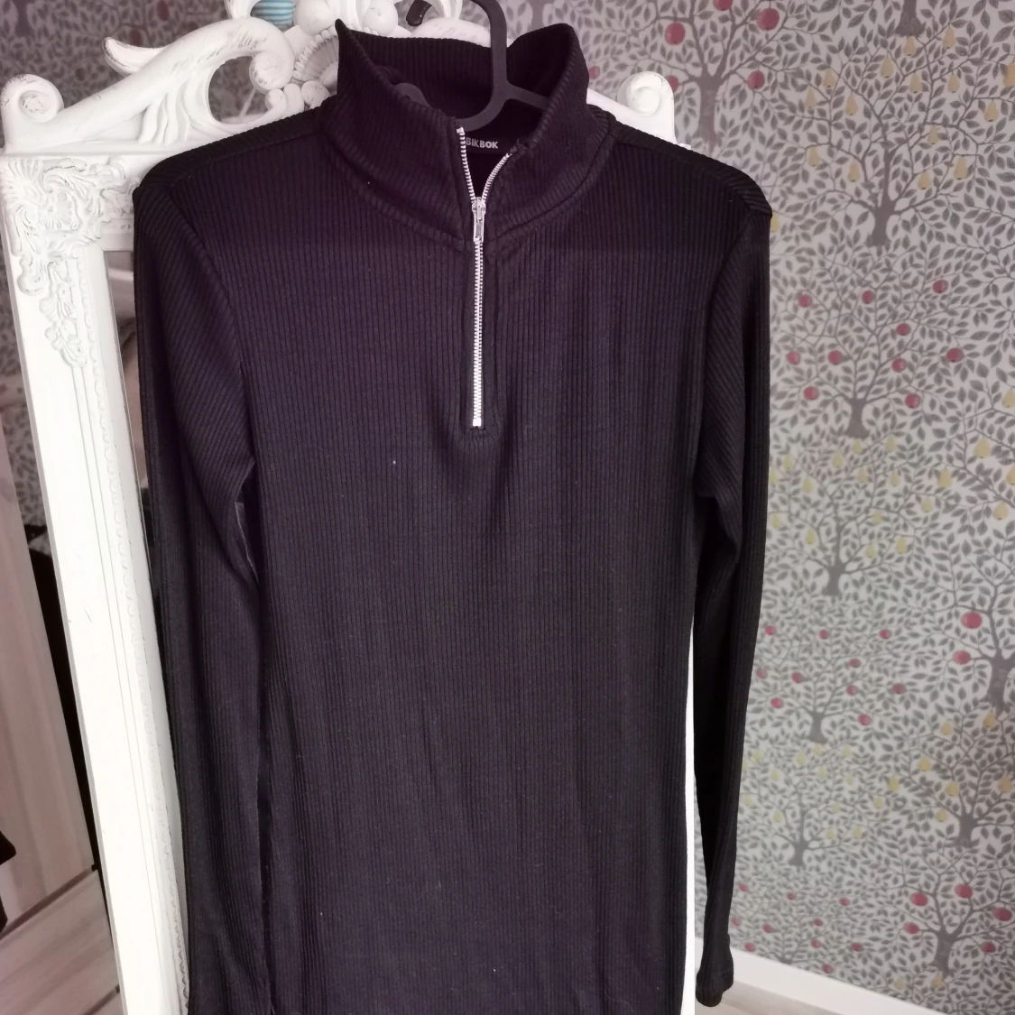Svart ribbad klänning med krage och dragkedja. Använd vid ett tillfälle. Köparen står för eventuell frakt, skickar med billigaste alternativet eller annat enligt önskemål ☺️